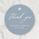 Elegant bröllop tackar för att du föredrar taggar med "tack" som visas i modern vit kalligrafi med dammig blå bakgrund. Anpassa det dammiga blå bröllop-tack du vill ha taggar med namn och bröllop-datum. Med tjänsten märks ditt personliga tack till visningen på nytt. Designad att samordna med vår Elegant Calligraphy Dusty Blue bröllop samling.