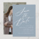 Elegant Calligraphy Dusty Blue Photo Bröllop Spara Datumet