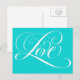 Elegant Calligraphy Kärlek Heart Teal Aqua Blue Vykort