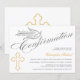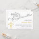 © Socialite Designs. Denna vackra kalligrafbekräftelseinbjudan har en duva och en guld färg kor. En underbar inbjudan som är könsneutral och kan användas för en pojke eller flicka. Byt enkelt ut vår malltext mot din egen. Alla designade inslag kan flyttat, ändras eller tas bort.