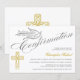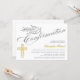 © Socialite Designs. Denna vackra kalligrafbekräftelseinbjudan har en duva och en guld färg kor. En underbar inbjudan som är könsneutral och kan användas för en pojke eller flicka. Byt enkelt ut vår malltext mot din egen. Alla designade inslag kan flyttat, ändras eller tas bort.