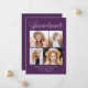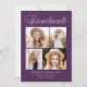 Elegant studenten meddelande med "Student" överst i ett vitt kalligrafiskt skript med lila bakgrund. Utformningen innehåller fyra bilder av student som visas i en collage-stil-layout med student namn, namn och studenten som visas nedan. Meddelandet om 4-fotot i studenten återgår till visningens valfria text, t.ex. framtida planer, information om studentfesten osv. Chic studenten-meddelandet är perfekten för att tillkännage studenten i både högskolan och högskolan studenter.