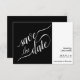 Det här "spara datumet"-kortet har en unik utformning som är enkel, modern och minimalistisk. Layouten har två rutor. Den lämnat rutan har elegant-vit skriptcalligrafi som läser "spara datumet" på en svart bakgrund. Rutan höger är ett lodrät som är vitt pub med en marginaljusterad text i svart höger som anger detaljerna. Unik och contemporary, det här kortet är perfekten för att lansera dina bröllop-planer.