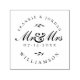Detta självbelåtna frimärke är perfekt för alla par som förbereder sig för sin stora dag och som vill ha den speciella beröringen för sina inbjudningskuvert. Utformningen har ditt första namn högst upp och ditt delade efternamn i grund i cirkulär form med "Mr & Mrs" i ett kalligrafiskt skript för elegant och ditt bröllop-datum under. Om du vill anpassa klickar du helt enkelt på knappen "anpassa" och skriver in informationen i de textrutor som visas.