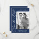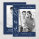Elegant Calligraphy Navy 2 Photo QR Code Bröllop Spara Datumet