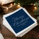 Add a sophisticated touch to your Christmas celebration with these elegant napkins featuring “Merry Christmas” in white calligraphy on a deep navy background. Your family name and the year are displayed below in classic serif lettering. Ideal for holiday dinners, parties, or festive gatherings with loved ones.
