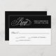 En vackert elegant bröllop-OSA kort med förtjusande kalligrafiskript, OSA text i silver över en kontrasterande svart bakgrund. Redigera svarsdatumet med önskat datum för OSA. En annan OSA kort-design är tillgänglig i den här samlingen i bröllop som innehåller val av anpassadets entryval.