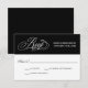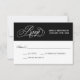 En vackert elegant bröllop-OSA kort med förtjusande kalligrafiskript, OSA text i silver över en kontrasterande svart bakgrund. Redigera svarsdatumet med önskat datum för OSA. En annan OSA kort-design är tillgänglig i den här samlingen i bröllop som innehåller val av anpassadets entryval.