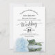 Elegant Calligraphy Pale Blue Rose QR Code Wedding Inbjudningar