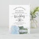 This beautiful wedding invitation features a stunning floral design with lacy calligraphy and a single long stemmed pale dusty blue or powder blue colored rose lying on its side mirrored in a pool of water. The back has room for you to list details and information along with a customizable QR code to direct your guests to your wedding website for information and/or to RSVP. The invitation is designed so that it will work well with a standard or an arch cut. Stylish, elegant, posh, and glam, this invitation will make a lasting impression and is a wonderful way to invite your guests to share in your joy on your special day.