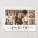 Elegant Modern Minimalistisk kalligrafi Skript 5 Photo Collage sparar datumkort i svartvitt. Denna delikata romantiska perfekt för modern bröllop. Har 5 (5) rutnätsfotokollage, en visuell kalligrafi i handskrivet stil-swash-svan-teckensnitt. Enkel att anpassa den med dina uppgifter om bröllop och bilder.