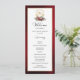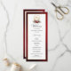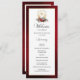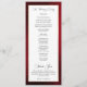 Timlös och elegant, men ändå ett helgdag-temat bröllopsprogram-kort med klassisk handdragen guld-blommigt-vapensköld som accentueras av en färgspray med röda och vita julblommor och grindar. Den här formella anpassningsbarna innehåller redigerbar textgrafik i fält, i anpassningsbar och textgrafik i guld och texturerat gräns i. Utsidan av gräns har en opulent, ruby red velvet struktur-bakgrund.