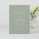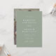 Inbjudan till elegant bröllop som innehåller uppgifter om namn och bröllop i vitt brev med grönt. Ett modernt kalligrafiskt skript kompletterar chicens bröllopsinbjudan till grönten. Inbjudan går tillbaka till visningen av ditt favoritfoto på förlovningen. Den här enkla inbjudan till fotobröllop är perfekt för både formell och avslappnad bröllop av vilken säsong som helst.