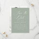 Meddela din speciella dag med den här elegant-grönten och det vita bröllop spara datum-kortet. Med "Spara datum" i snyggt, vitt calligrafi på en mjuk bakgrund för grönten erbjuder den här designen en chic och modern estetik. Anpassa kortet med namn, bröllop-datum, plats och bröllop-webbplats i fet vit stil för att få en snyggt men praktisk beröring. Kortets baksida visar lodräts förlovning i fullt, och lägger till ett hjärtligt och personligt inslag. Perfekt för par som vill ha ett enkelt, modernt och elegant meddelande, detta datum anger tonen för ert oförglömliga firande.