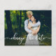 Modern Elegant Calligraphy-skript ändrar datumet Bröllop sköt upp ett par foto-vykort