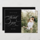 Tack för kalligrafi av eleganten, ett fotokort med ett framstående skript på olika bakgrunder i färg med ett eget foto och en vänlig anteckning på baksidan