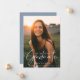 Elegantens typografi, övertäckning av vita skript, fotomeddelande från studenten. Bakgrunden färg som visas i dammblått kan anpassas.