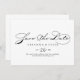Det här elegant kalligrafområdet vågrät bröllop spara datum är perfekt för ett bröllop som är ett område av rustik. Den enkla och snyggt designen har skript av typen klassisk och finare i svartvitt.