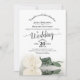 Den här vackra bröllopsinbjudan har en fantastisk blommigt med lacy calligraphy och en enda lång härdad elfenben vit ros som ljuger på sin sida speglad i bassäng i vatten. På baksidan finns det utrymme för dig att lista information och information tillsammans med ett QR-anpassade som kan användas för att skicka gästerna till bröllop webbplats för information och/eller OSA. Inbjudan är designad så att den fungerar bra med en standard eller en båge. Snyggt, elegant, post och glam, denna inbjudan kommer att ge ett bestående intryck och är ett underbart sätt för inbjudan era gäster att i er glädje på er speciella dag.