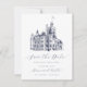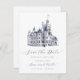 Impress dina gäster med den här eleganten bröllop spara datum från JessicaAmber. Det här klassiska kortet innehåller en detaljerad illustration av ett slott som du kan ersätta med en bild av destinationen bröllop (transparent eller vit bakgrund föredras). Elegant mörk blått bokstäver visningar bruden och brudgummen namn och närmare uppgifter om bröllop, inklusive plats och datum. Bläddra i min samling efter matchande inbjudningssvit. ⚠ Om du vill redigera speciella tecken för calligraphy & använda kan du kopiera och klistra in dem från den här sidan: bit.ly/Emeline-Script ⚠ ・ ・ Om du vill ha fler bröllop-sviter går du till min butik Zazzle.com/EventsByJessicaAmber ・ Om du vill ha anpassningsbar kan du skicka ett meddelande till mig på Zazzle