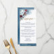 Önska gästerna med det här elegant-menykortet som kan ha ditt namn och datum på grund eller låta menyn vara som platskort och använda det här avsnittet för att lägga till gäst namn och efternamn. Använd separat design med en unik design överst med delikat blå vattenfärgsfärg som överlappar med detaljer om hörndetaljer, samt gyllene blommigtar, meny i guldhandskriven modern kalligrafi och blå vattenfärg rand på grund. Blommor och löv i dammblått, marin, burgundi, rött, magenta och lila. Blått vattenfärg tillbaka. En del av vår "kelestial Blooms"-samling med en mängd olika samordningsprodukter tillgängliga.