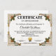 This elegant Certificate of Appreciation features a luxurious gold ornamental frame, designed to recognize excellence, dedication, and long-term service. Ideal for employee recognition, corporate awards, volunteer appreciation, and formal ceremonies.