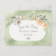 En sådan blommigt av eleganten är utformad med fantastiska elfenbensblommor på en grönt vattenfärgbakgrund. Ett vykort för enklare bröllop "Spara datumet". Det mumlade färg ge inbjuder en romantisk känsla. Perfekt för alla säsonger.