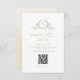Kort för elegant OSA online bröllop, med QR-kod och ett utsökt handtaget monogram som visar parets initialer i kalligrafi. Vattnet tvättar i champagne guld, elfenben och krämnyans. En del av vår "Champagne Cream Watercolor Botanical Monogram Bröllop"-samling med en mängd olika samordnande produkter.