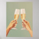 Två händer som håller champagneflöjt i en festskål mot en mjuk pastellbakgrund. Scenen fångar en elegant och ett glatt nyårsmoment i Kväll med gyllene bubblor stigning i glasögonen.