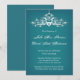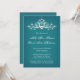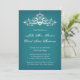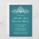 Elegant bröllopsinbjudan med en detaljerad silverkronlampa på en blå bakgrund. Denna design finns på flera brevpappersprodukter för att skapa ett vackert tema för alla dina bröllopspapper.