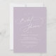 Elegantens charm lila inbjudningskort för möhippa är perfekt för en enkel möhippa. Den moderna minimalistiska designen har en tidlös pastelllavendelns lila och romantisk kalligrafi med bohemisk saga stil, perfekt för ett vår- eller sommarträdgårdsbröllop.