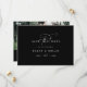Den här eleganten charmutade mörken Black bröllop spara datum är perfekt för ett enkelt bröllop. Den moderna minimalistiska designen har en tidlös romantisk kalligrafi på en sofistikerad mörk svart bakgrund med bohemisk saga stil. Anpassa dina datumkort med datum för namn och bröllop på framsidan och ett foto för förlovningen, din webbplats adress och QR-koden för bröllop på baksidan.