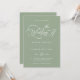 Elegant Sage grönt bröllopsinbjudan med romantisk, snabb kalligrafi med detaljer på baksidan. Perfekt för alla säsonger. Om du vill ha en mer avancerad anpassning av den här designen klickar du på BLUE DESIGN VERKTYG ovan!