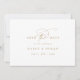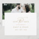 Eleganten är vit och guld bröllop spara datum är perfekt för ett enkelt bröllop. Den moderna minimalistiska designen har vit och tidlös romantisk kalligrafi i guld med bohemisk saga stil. Anpassa dina datumkort med datum för namn och bröllop på framsidan och ett foto för förlovningen, din webbplats adress och QR-koden för bröllop på baksidan.