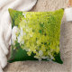 This square throw pillow measures 20" by 20" and features an Elegant Chartreuse Green and White Limelight Hydrangea from My Iowa Garden.