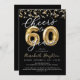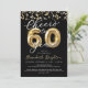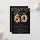 Fira en 60-årsdag med dessa elegant- och festinbjudningar till festen svarta och guld, med titeln CHEERS TO 50 YEARS i faux metallic guld ballong-nummer och modern manustypografi med guld-strömmare och konetti och vitt ljus. ASSISTANS: Om du vill ha hjälp med designändringar eller anpassning, ändrar färg, överför designen till en annan produkt eller om du vill samordna produkter kontaktar du designern INNAN du beställer den via Zazzle-Chatta eller e-post makeitaboutyoustore@gmail.com.