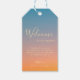 Denna märkre för gåvor från elegant bröllop är perfekt för ett modernt bröllop. Den romantiska minimalistiska utformningen har en Elegant Chic Blue Orange Sunset Modern Bröllop Gift-Märkre