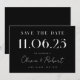 Anpassa den här chicen för svart och vitt för elegant spara datumet för att få ditt bröllop-datum, namn och information.