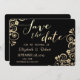 Elegant chic guld blommor på svart bakgrund. Spara det datum som kan anpassas med ditt namn på ett bra sätt.Välj knappen "anpassa" om du vill ändra teckensnittet stil, färg och storlekt.