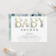 Elegant Chic Guld Teal Blåa blommor Baby Shower Inbjudningar