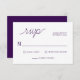 Det här Bröllop OSA Card-kortet har ett skript för elegant på chicens lila med modernt minimalistiskt tillvägagångssätt. Du kan ändra teckensnittet stil och storlekt genom att utforma verktyg i använda. Visa andra produkter från den här samlingen.