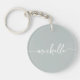 Elegant sofistikerad salvia grön flickaktig monogram namn skript anpassad personlig nyckelring. Denna enkla minimalistiska design med ditt förnamn i en vacker handskriven stilisert svans typsnitts typografi (eller kalligrafi) skript på salvia grön eller dammig grön färg bakgrund. Så lätt att anpassa. Stor snygg feminin husvärmningspresent, också för födelsedag, bröllop, mors dag, bröllopsfest, baby shower, sweet 16 födelsedagsfest, för examensfest och Det är för tjejen som älskar unika snygga saker.