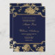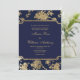 Elegant chic marinblå faux guld blommigt Bröllop Inbjudningar