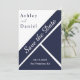 Elegant Chic, marinblåvitlass Modern Bröllop Spara Datumet