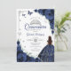 Elegant Chic Navy Blue Silver Blommigt Quinceanera Inbjudningar