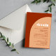 Kortet Peach Terracotta Arch Boho Bröllop Chic är ett snyggt och praktiskt tillägg till ditt bröllop-kontor, designat för viktiga detaljer med gästerna samtidigt som det förbättrar presentationen av hela inbjudan. Med ett snyggt bågmotiv i mjuka persikor och jorda terracotta-toner, parade med ren, modern typografi, blandar det vackert bohemisk charm med finare elegans. Dess solnedgångsininspirerade palett i färg tillför värme och romantik, skapar den som ett komplement till boho-, rustik-, trädgårds- eller målbröllop. Det här kortet är idealiskt för att inkludera information som logi, anvisningar, klänningskoder eller mottagningsdetaljer, och ser till att dina gäster är välinformerade samtidigt som de behåller ett sammanhängande och polerat utseende. Tack vare att det är väl utformat för både skönhet och funktion förvandlar det viktig information till en elegant som utökar er kärlek-historia.