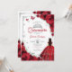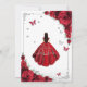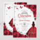 Röd, silver och vit inbjudan till Quinceanera firande. Med brunettflicka i boll-klänning, skript, silver-fjärilar, röd ros och tiara. Perfekt för en elegant prinsessan stil glam firande. Anpassa med dina egna detaljer. Skrivna Zazzle-inbjudningar eller digital utskrivbar mall för omedelbar nedladdning.
