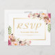 Elegant Chic Rosa Blommigt Guld Ram Bröllop OSA Inbjudan Vykort