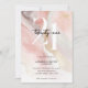 Modern minimalistisk inbjudan på 21:a födelsedag med rosa marble agate water color stil bakgrund med chic typography och elegant script.