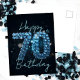 Elegant Chic Safirblå och Svart 70-årsdag Vykort